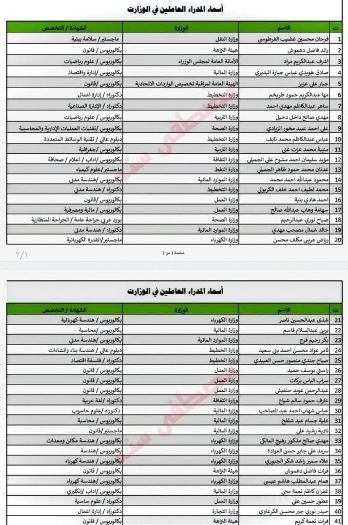 بالوثيقة.. اسماء المدراء العامين الذين تم تثبيتهم من قبل مجلس الوزراء