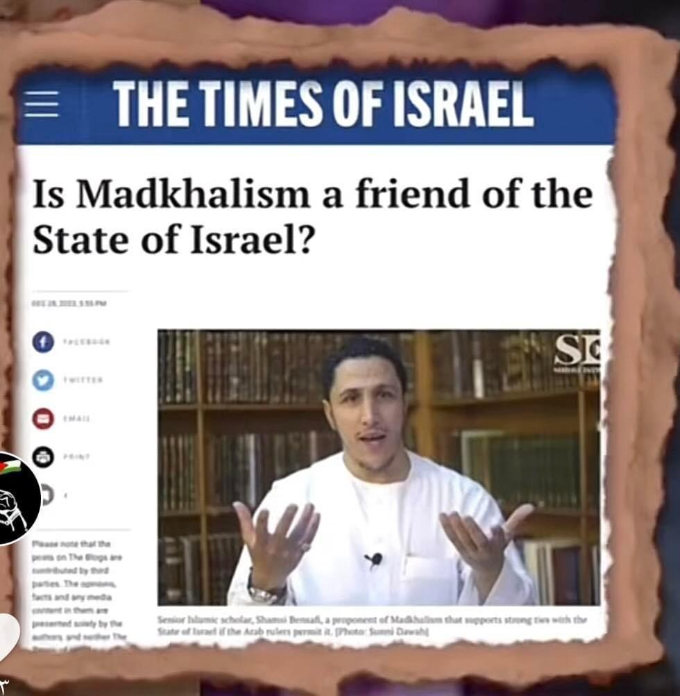 يقول الكاتب: (كان واضحاً جداً منذ اليوم السابع من اكتوبر كيف اندفع مشايخ المداخلة لدعم الجيش الإسرائيلي في حملاته الصاروخيّة الشرسة ضد المقاومة الفلسطينية. حتى تبين لنا بما لا يقبل الشك انهم حلفاؤنا في مواصلة الهجوم على غزة). .