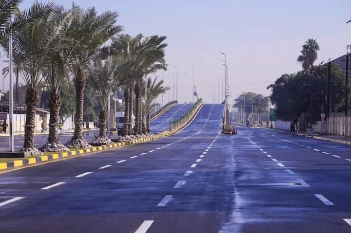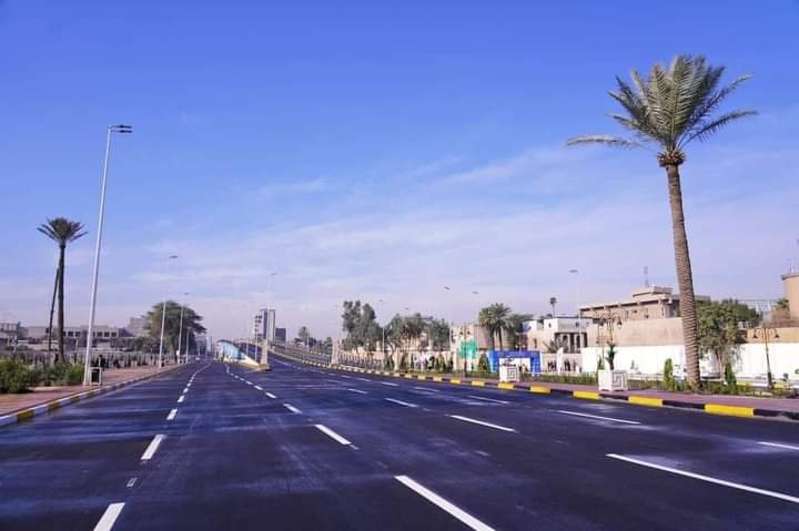 🔵 تضمن العمل تطوير وتوسعة الطرق الرئيسة من تقاطع مجمع الكليات في باب المعظم إلى تقاطع الصرافية، مع التاثيث بالعلامات المرورية واماكن الاستراحة والتزيين بالمساحات الخضراء.
