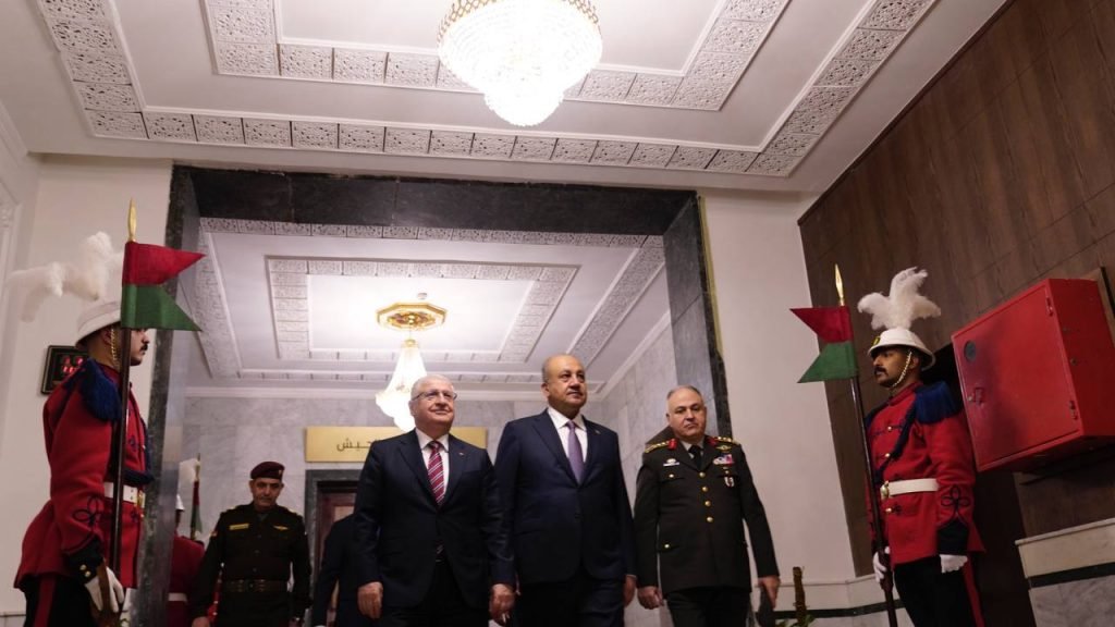 وجرت مراسم استقبال رسمية للوزير الضيف حضرها كبار القادة والضباط في وزارة الدفاع، عُزف خلالها النشيدان الوطنيان لجمهوريتي العراق وتركيا.