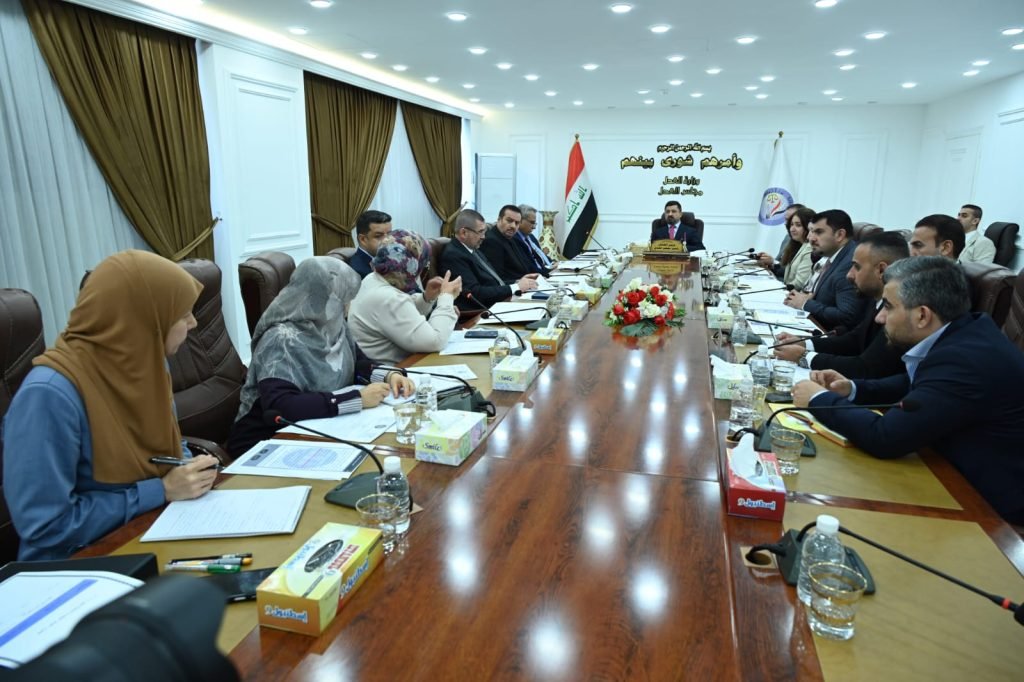 واختتم الاجتماع بمناقشة مخرجات لجنة توزيع الكوادر الوظيفية على الدوائر العدلية، حيث وجه السيد الوزير مدير عام الدائرة الإدارية والمالية بالاستمرار بمتابعة الموضوع مع الأمانة العامة لمجلس الوزراء بخصوص نقل الملاكات الوظيفية الفائضة من المؤسسات الأخرى إلى الوزارة وحسب الاختصاصات المطلوبة.
