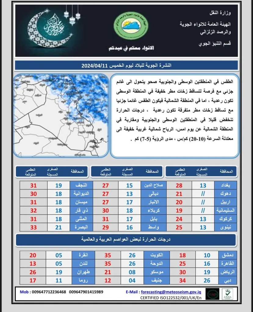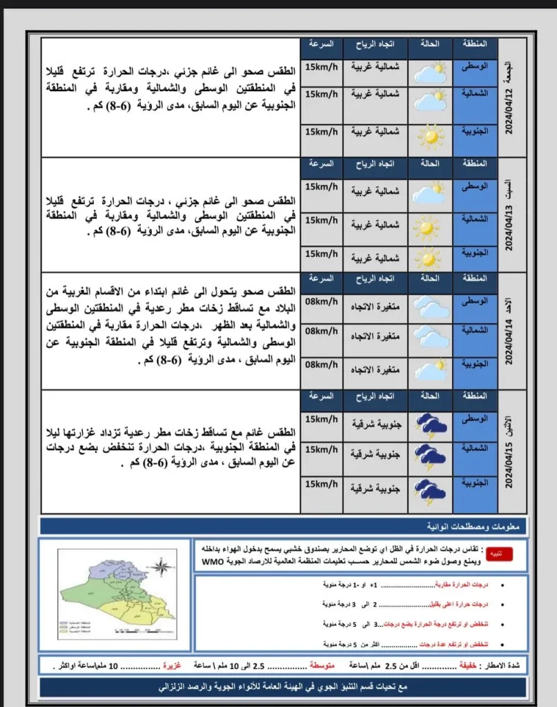 طقس العراق.. الحرارة ترتفع الجمعة والسبت والأمطار تعود الأحد