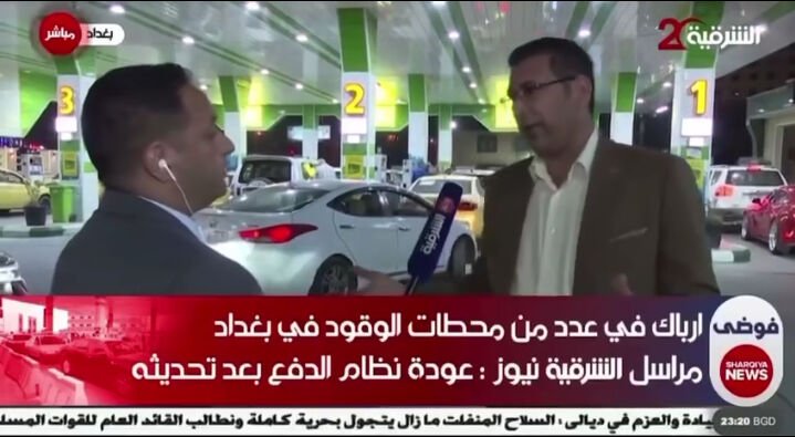 السيد مدير عام شركة المنتجات النفطية حسين طالب يجري تحديثات على عمل المحطات ومدير هيئة توزيع بغداد السيد محمد شبر يرافق الاعلامي خطاب عادل ويكشف عن اليه العمل في الغاء التعامل بالنقد وتفاصيل مهمة تخص الادارة الفنية لضبط ايقاع العمل في توزيع الوقود.