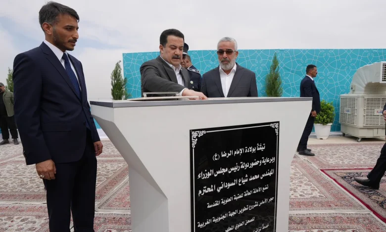 السوداني يضع حجر الاساس لمشروع تطوير الجهة الجنوبية الغربية للصحن العلوي
