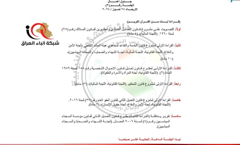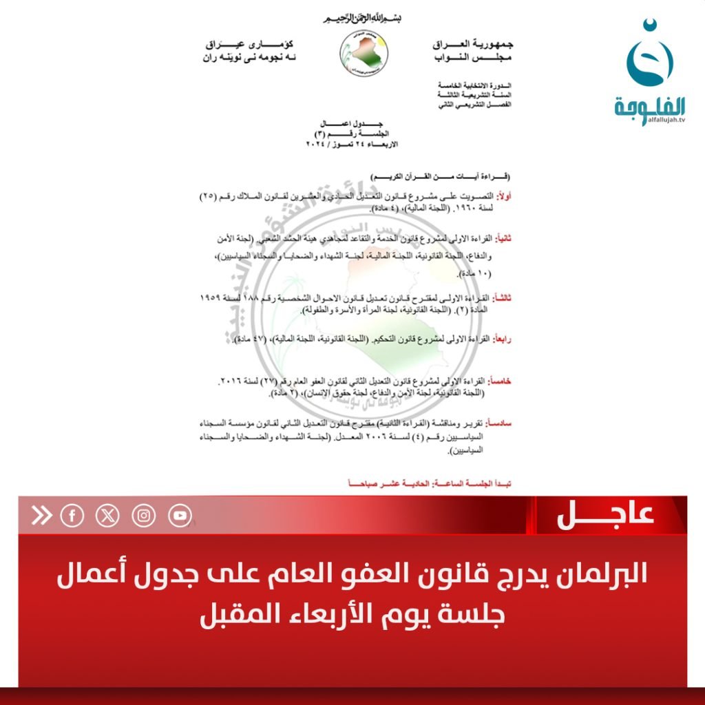 البرلمان يدرج قانون العفو العام على جدول أعمال جلسة يوم الأربعاء المقبل