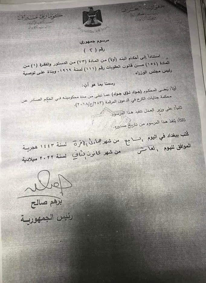 بالوثائق……عفو خاص عن نجل محافظ النجف الاشرف السابق المحكوم بتهم تجارة المخدرات