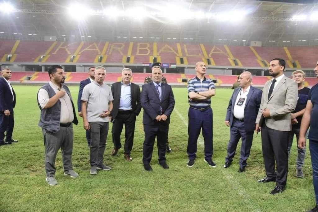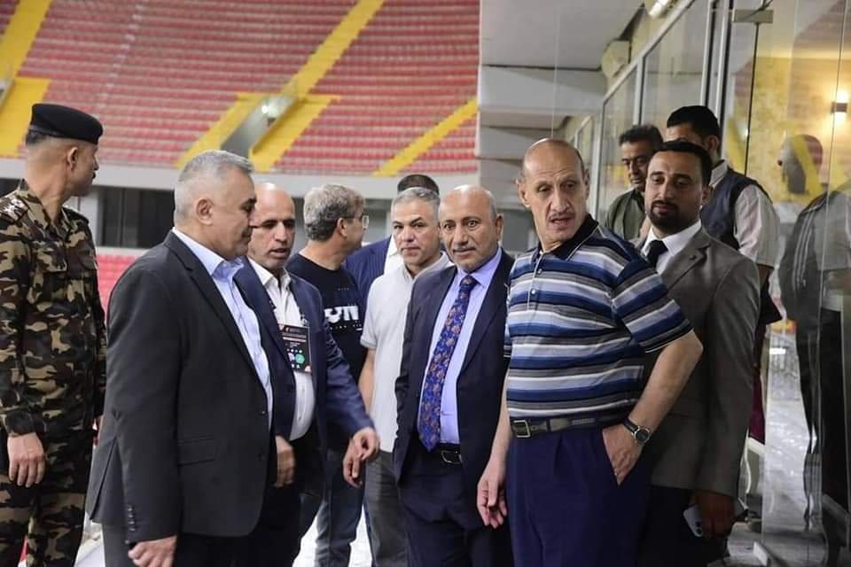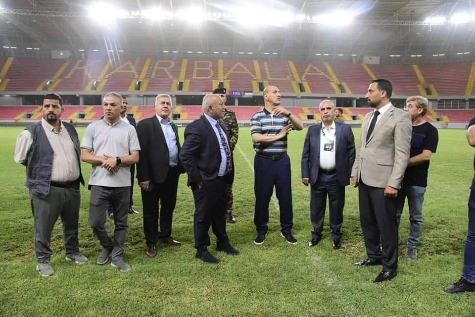 يقومون بجولة شملت ملعب كربلاء الدولي والمنطقة المحيطة للاطلاع على الاستحضارات الخدمية والاجراءات الامنية لتأمين بطولة غرب اسيا والتي ستقام على ملعب كربلاء الدولي.