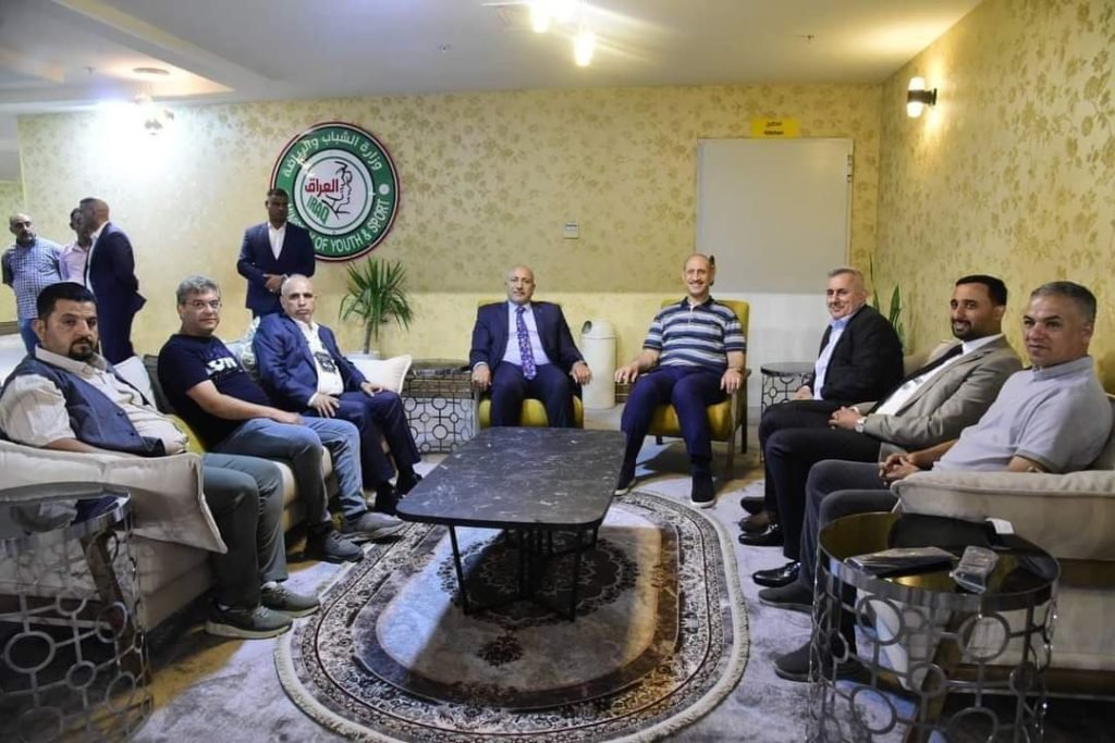 محافظ كربلاء المقدسة المهندس نصيف جاسم الخطابي ورئيس الاتحاد العراقي لكرة القدم الكابتن عدنان درجال ومستشار رئيس الوزراء لشؤون الرياضة والشباب السيد اياد بنيان