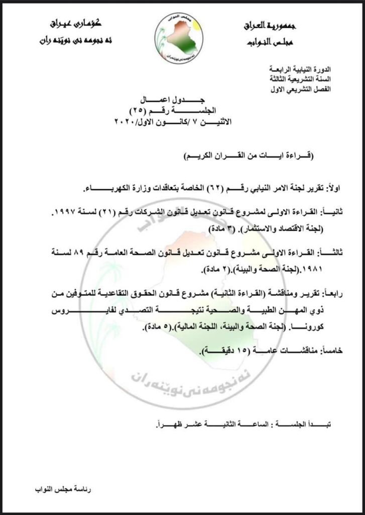 جدول أعمال جلسة مجلس النواب المقرر عقدها يوم غد الاثنين.