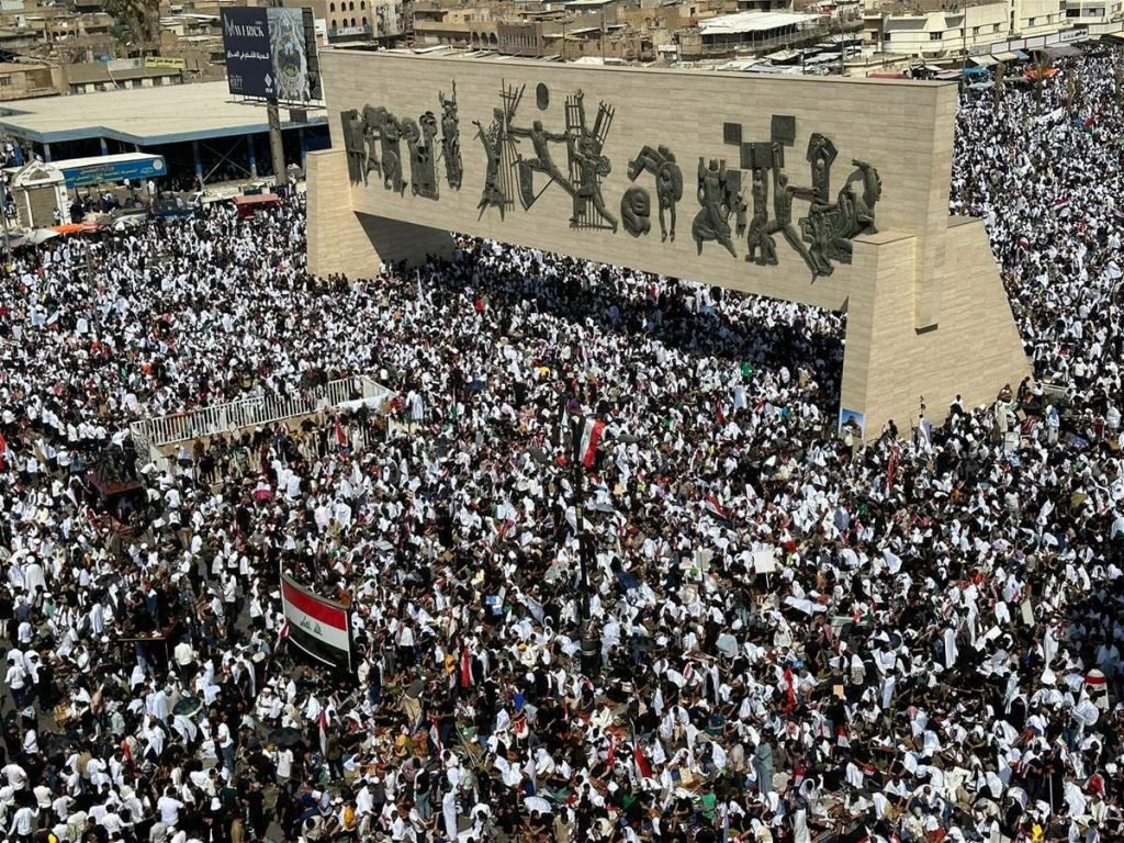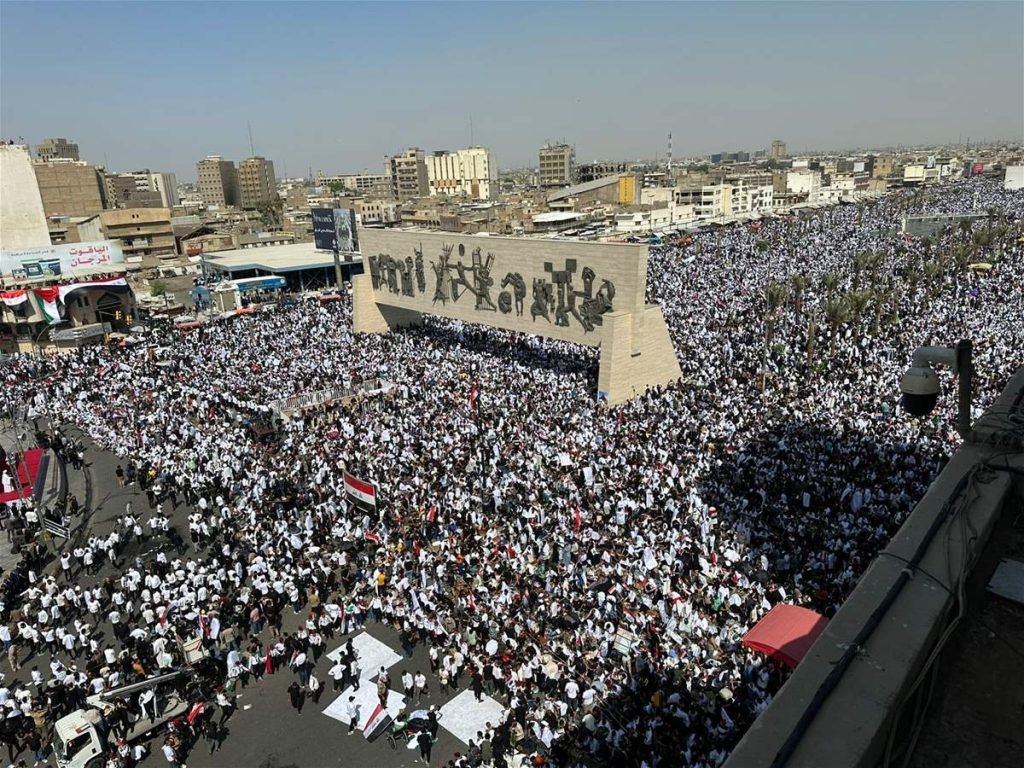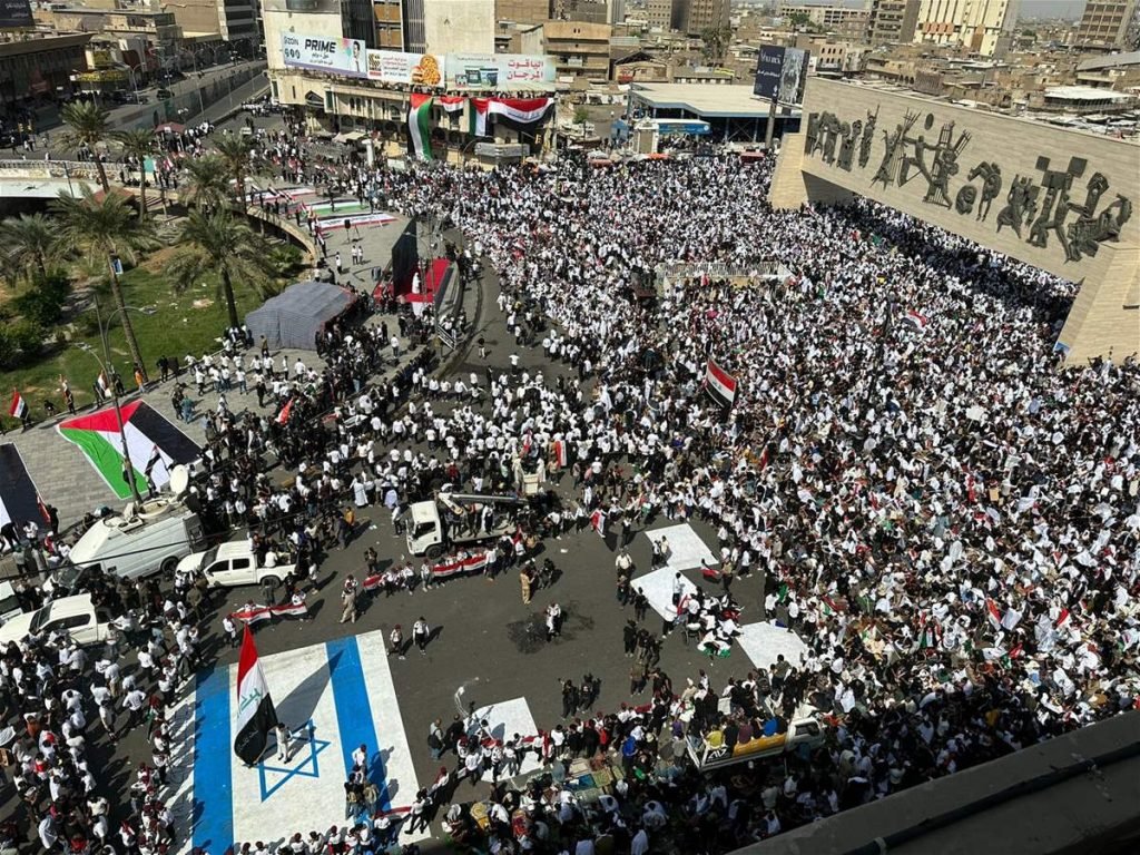 انطلقت، صباح اليوم الجمعة، تظاهرة لأنصار التيار الصدري بساحة التحرير في بغداد، لمساندة الشعب الفلسطيني ضد الاحتلال الإسرائيلي.