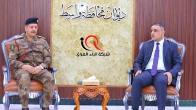 شبكة انباء العراق .. استقبل محافظ واسط د.محمد جميل المياحي قائد المنطقة الحدودية الثالثة العميد ميروز ياسين الخيگاني،وبحث معهتفعيل التعاون…