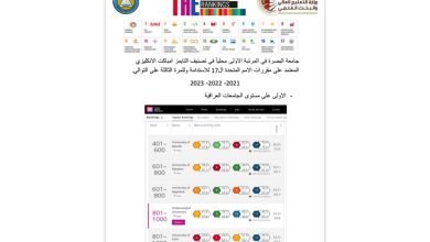 شبكة انباء العراق .. احرزت جامعة البصرة وللمرة الثالثة على التوالي ، المرتبة الاولى محليا في تصنيف التايمز امباكت الانكليزي…